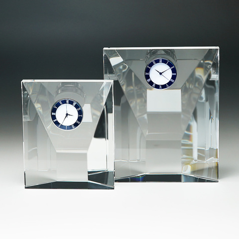 従来のサンドブラスト加工、さらにフルカラー印刷・レーザー加工にも対応した新しい形のクリスタル時計です。 退職以来・長寿の祝い・金婚式にご両親へのプレゼントなどによろしくお願いします。